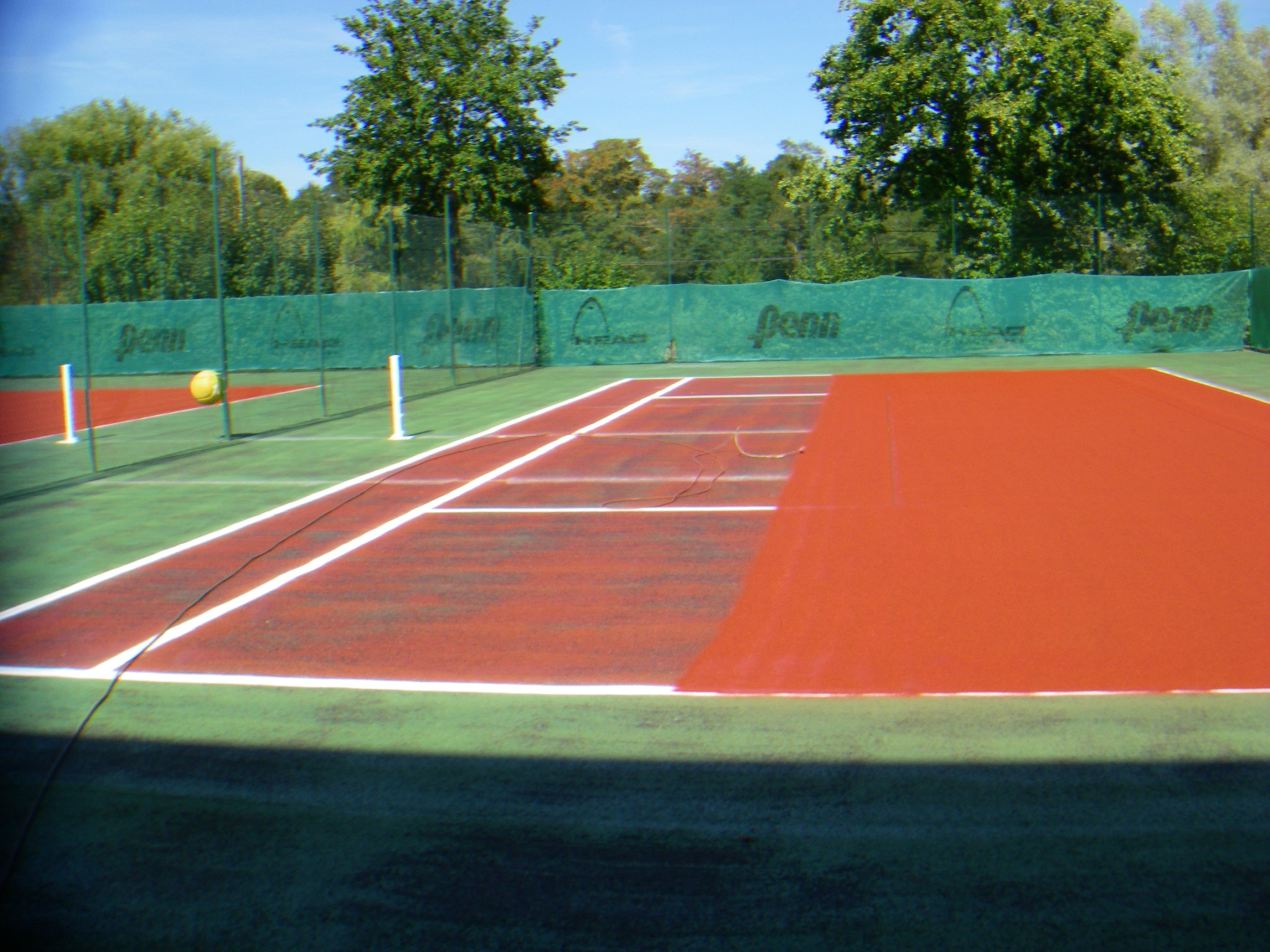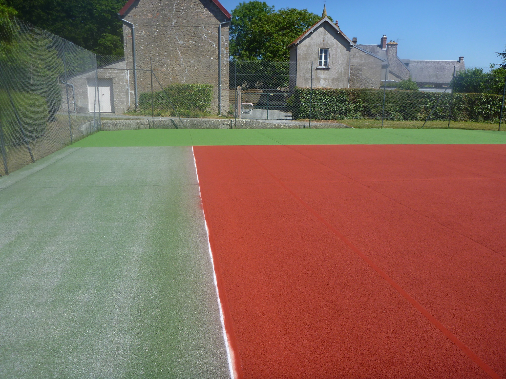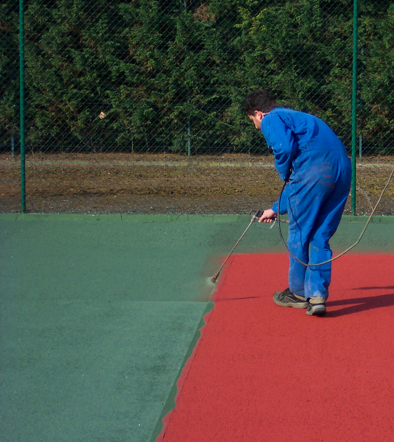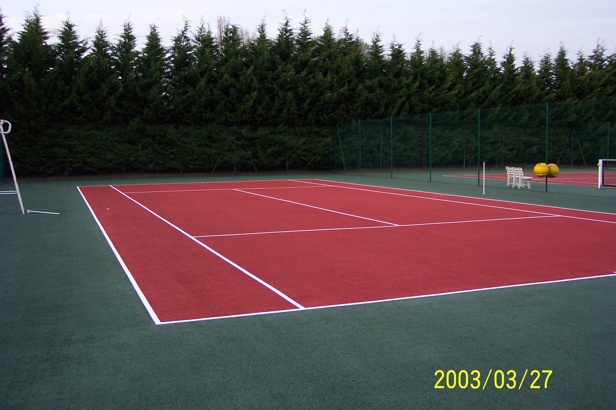Peinture Nous utilisons une peinture spéciale tennis, composée de silice et de résine polymère, appliquée en trois couches, dans des teintes variées, à choisir sur catalogue.